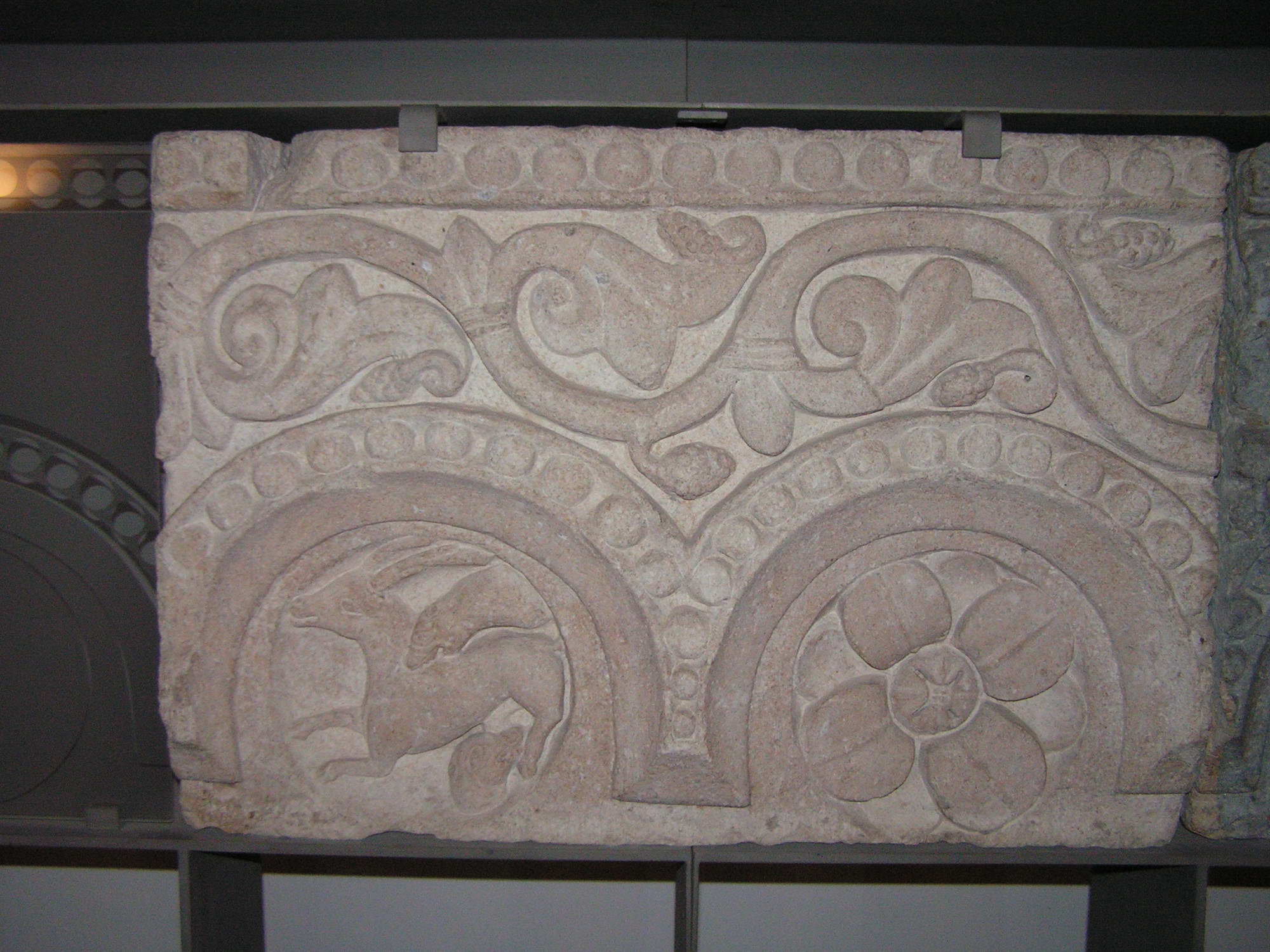 Cluny, Sculpture romane, Cerf et chien (Musee du Palais Jean de Bourbon).jpg